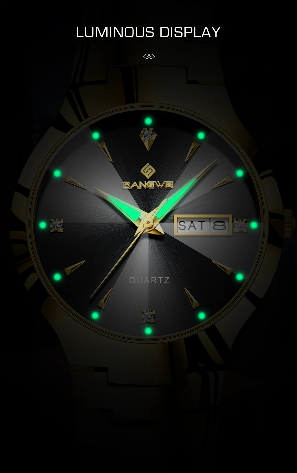 Feature: Shock Resistant,Luminous,Auto Date,Complete Calendar,Water-Resistance,swim,Week Display,Luminous Hands
