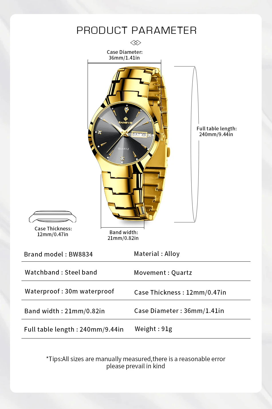 4.Due to shooting equipment and other reasons, there may be some color difference between the actual watch and the picture. Since the sizes are all measured manually, the actual figures may have some slight errors.Please ensure that you can accept this before placing an order. Thank you.